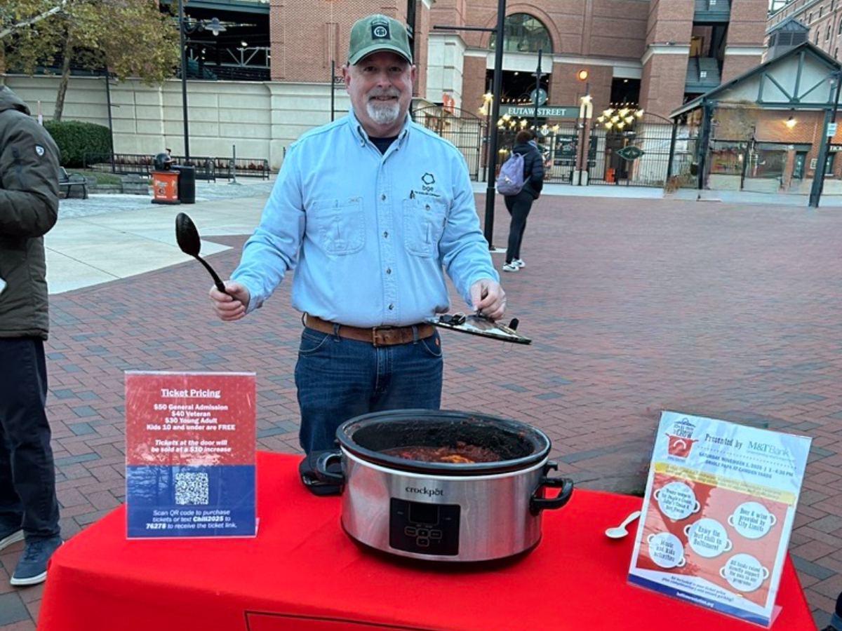 One moment stands out: Jim helped BGE earn the Stars, Stripes and Chow Chili Cook-Off Judges Choice Award with his signature “Life’s Chili.” But the real win was the impact—$87,000 raised for The Baltimore Station, supporting veterans in need. “Seeing how much that event helped our community means the most to me,” Jim shares.