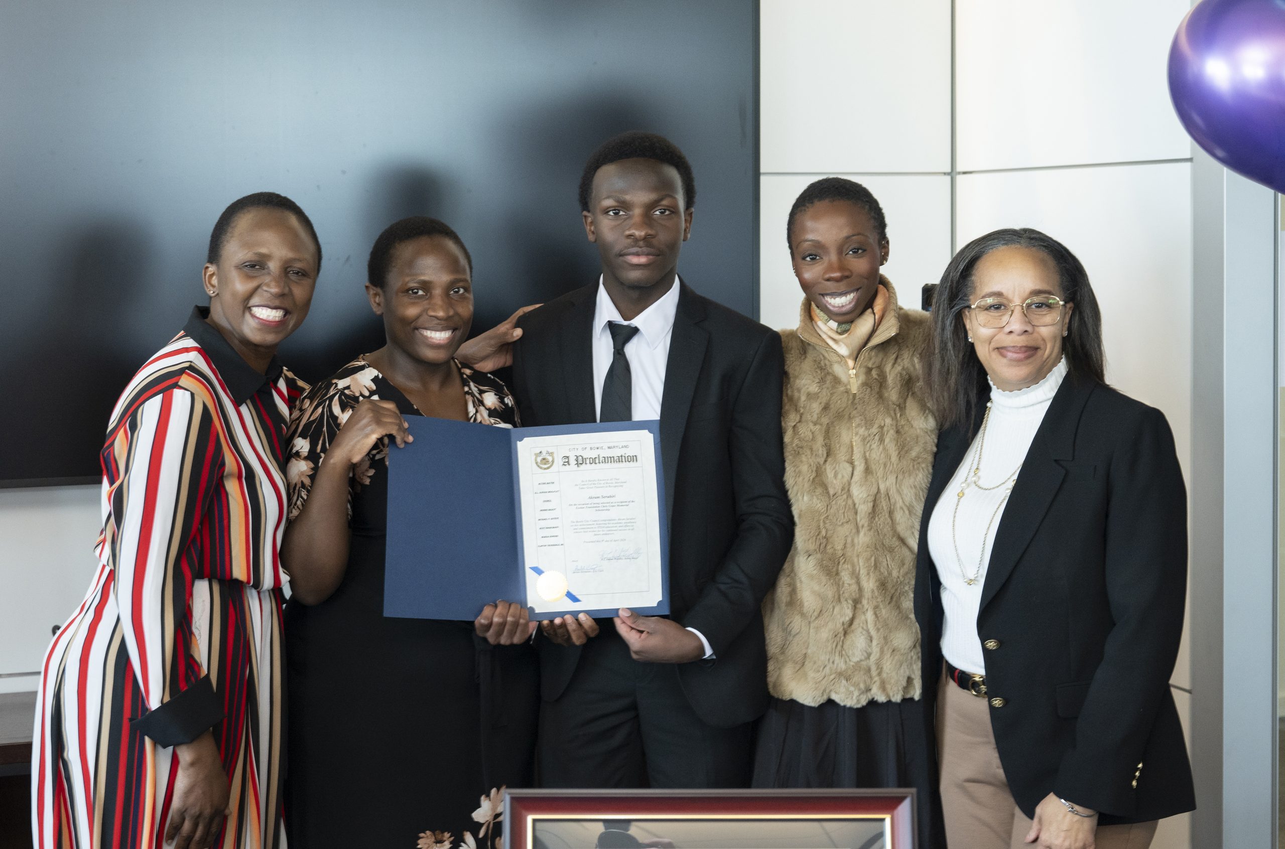Akram Serubiri poses with his mother, aunt, Bowie City Councilmember Roxy Ndebumadu (District 4), and BGE President and CEO Tamla Olivier.